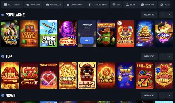 Automaty stanowią największą część naszej biblioteki — tysiące tytułów od klasycznych formatów 3-bębnowych po nowoczesne video sloty i wysokie jackpoty. sloty Aerobet oferują funkcje takie jak rozszerzające się wildy, zakup bonusu w wybranych grach oraz darmowe spiny, które mogą uruchamiać kolejne rundy. Dla graczy lubiących wyższe ryzyko dostępnych jest wiele opcji o wysokiej zmienności, podczas gdy inni wybierają stabilniejsze wygrane w grach o średniej zmienności.